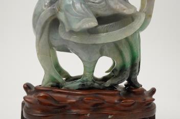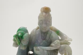 Lot 207 , A Chinese jadeite figure of Xi Wangmu riding on a phoenix, late 19th/early 20th century