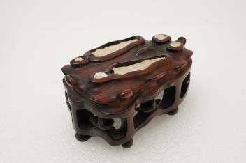 A section of the base has been broken off and re-glued, natural inclusions to stone, otherwise in reasonable condition.