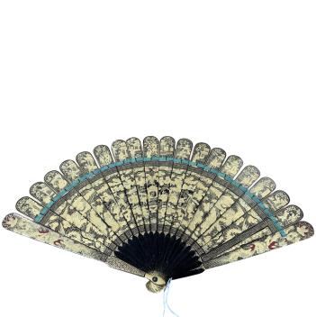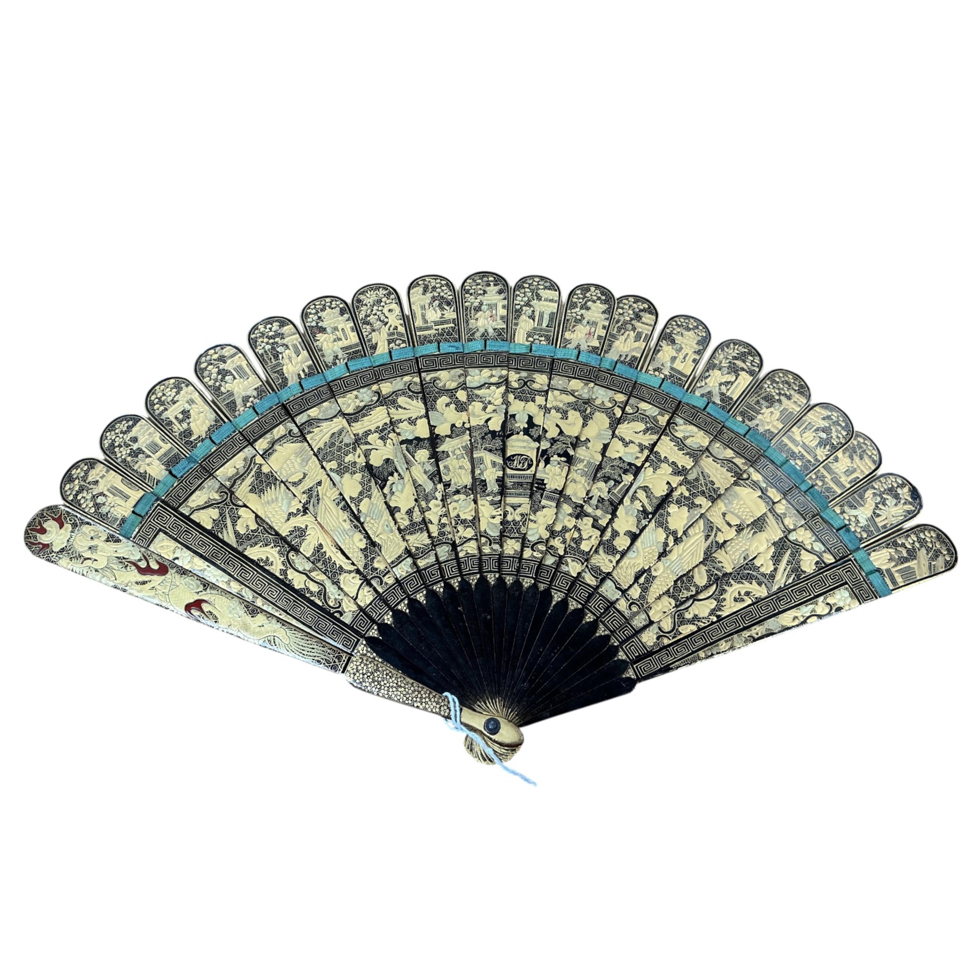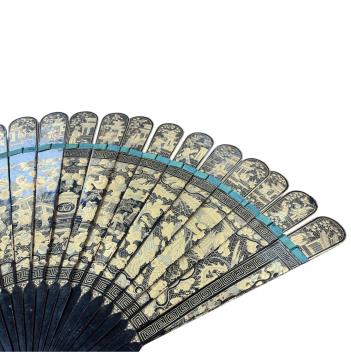 Lot 1467 , A Chinese lacquered and gilded brise fan depicting figures and dragons, 20cm in length
