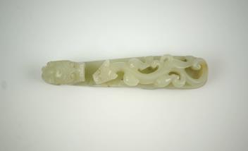 Lot 153 , A Chinese pale celadon jade 'dragon' belt hook, 18th/19th century