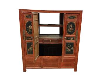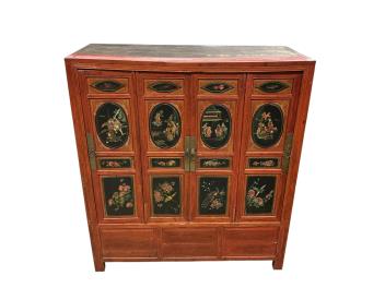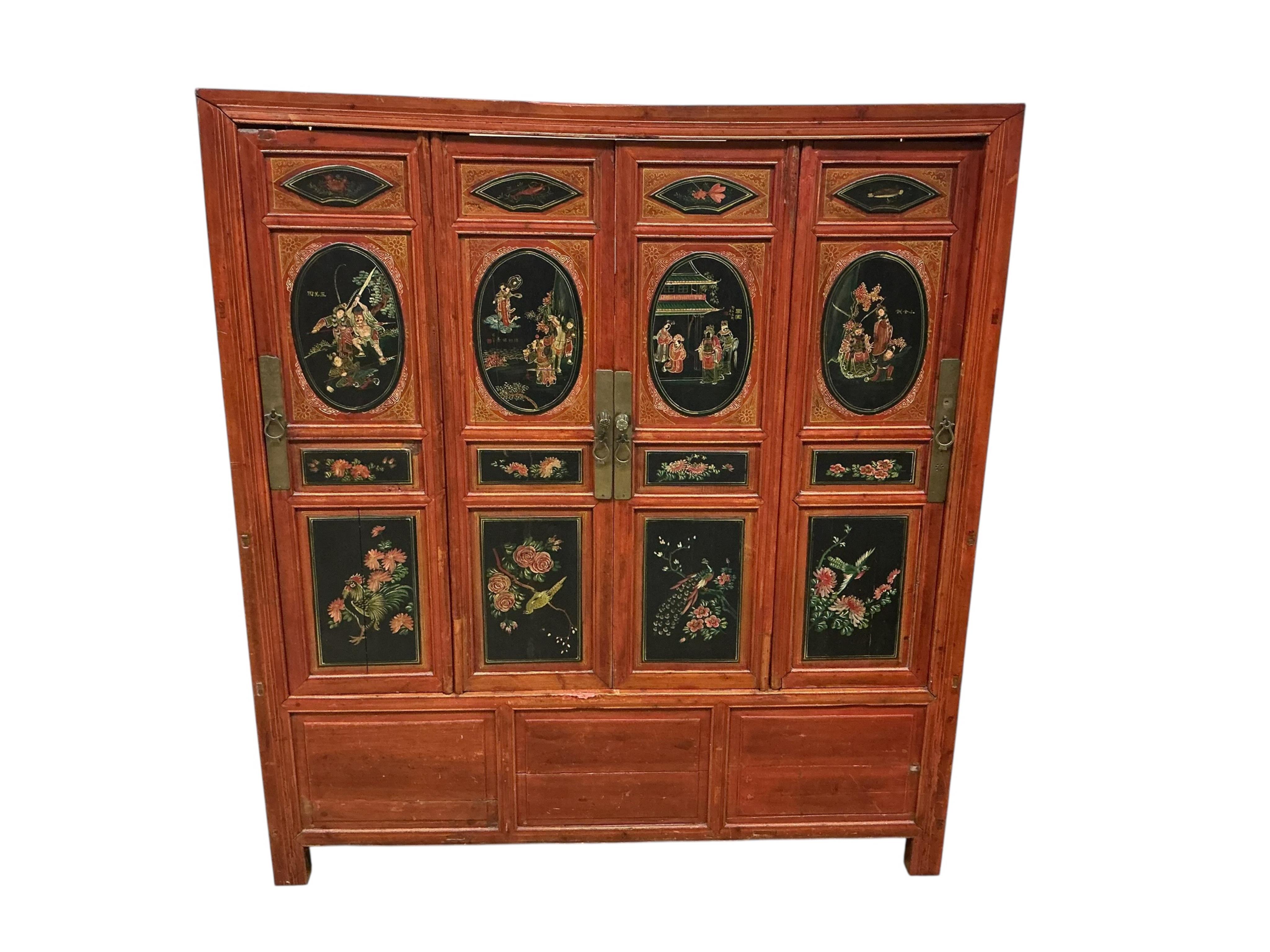 Lot 1302 , A Chinese red lacquer and gilt wedding cabinet, width 139cm, depth 58cm, height 155cm