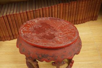 Lot 494 , A Chinese red lacquer stand, 24.5cm high