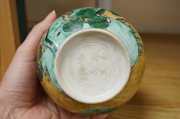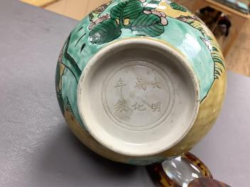 Lot 256 , A Chinese sancai-glazed bottle vase, Chenghua mark but late 19th century, 23cm