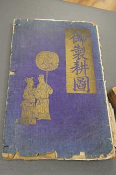 ° A Chinese text book, Imperial farming and silk production, and a smaller Japanese text book, 1874, brocade designs, largest 28x18cm