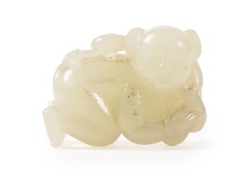 Lot 206 , A Chinese white jade figure of a crouching boy, 19th/20th century
