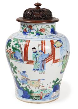 Lot 76 , A Chinese wucai baluster jar, possibly Shunzhi / Kangxi period