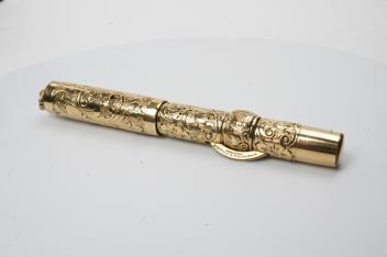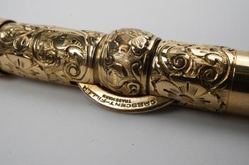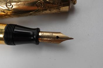 Lot 2033 , A Conklin ring top hand engraved crescent filler fountain pen with 14ct. gold Conklin nib