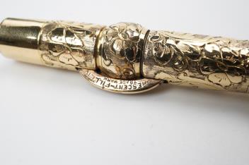 Lot 2044 , A Conklin ring top hand engraved crescent filler fountain pen with 14ct. gold Conklin flexible nib