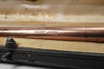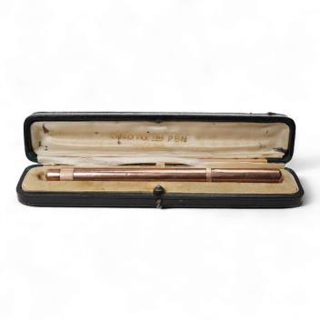 Lot 2098 , A De La Rue Onoto Rose 9ct gold piston fill pen, in original case