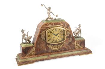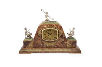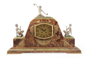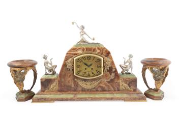 Lot 323 , A French Art Deco onyx mantel clock garniture
