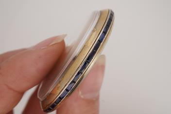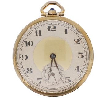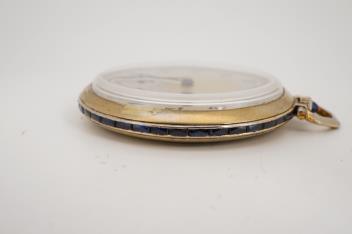 Lot 86 , A French Art Deco parcel gilt white metal open faced dress pocket watch, with synthetic sapphire set border and winding crown