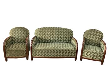 Lot 2047 , A French Art Deco upholstered beech three piece suite, settee width 128cm, depth 70cm, height 76cm