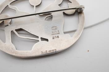 Lot 1914 , A Georg Jensen sterling kneeling deer oval brooch, design no. 256, 44mm.