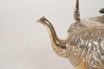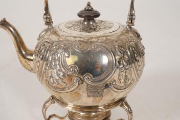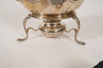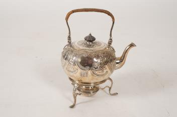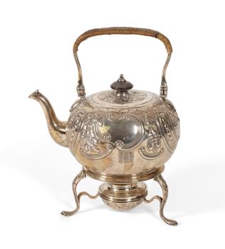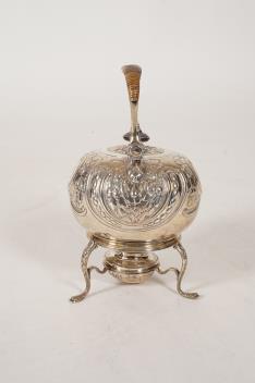 Lot 2 , A George I silver tea kettle on stand, with burner by Gabriel Sleath, stand unmarked