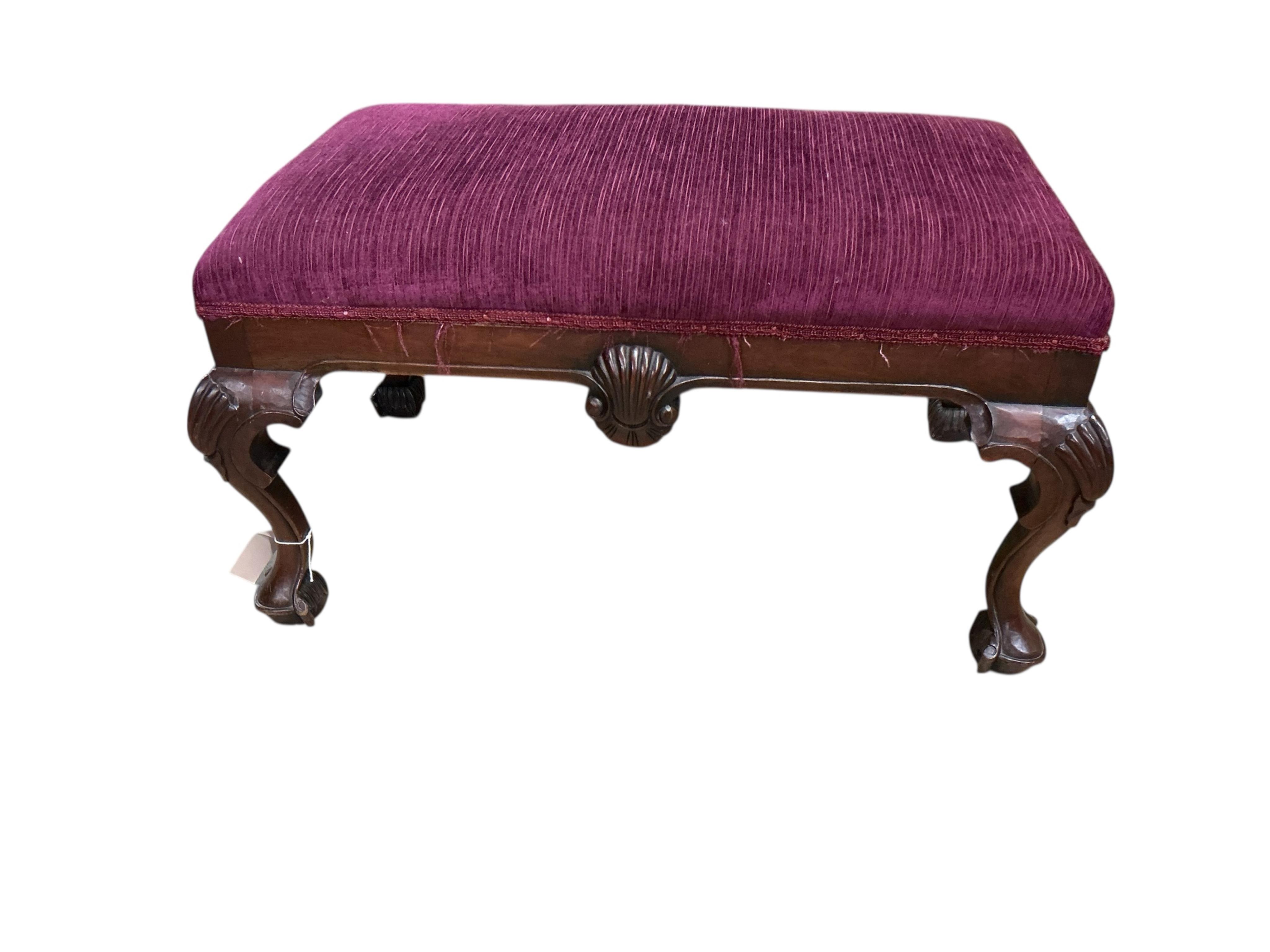 Lot 1261 , A George II style carved mahogany upholstered stool, width 86cm, depth 51cm, height 46cm
