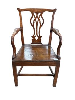 Lot 2104 , A George III Provincial oak wood seat elbow chair, width 60cm, depth 46cm, height 96cm