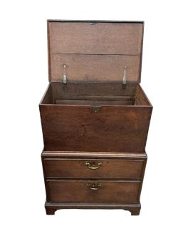 Lot 1288 , A George III and later oak chest, on twin-drawer base, width 63cm, depth 40cm, height 87cm