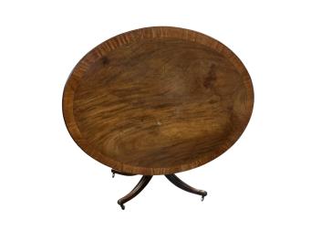 Lot 1077 , A George III banded mahogany oval tilt top dining table, width 160cm, depth 122cm, height 70cm