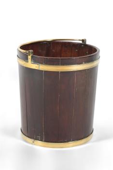 Lot 304 , A George III brass bound staved mahogany peat bucket