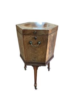 Lot 1086 , A George III inlaid mahogany hexagonal cellarette, width 47cm, height 75cm