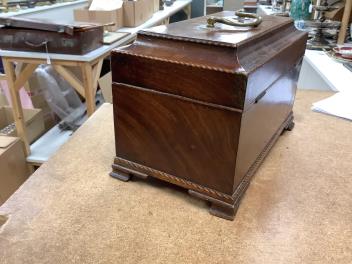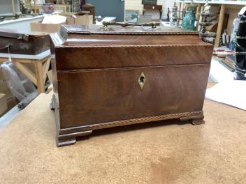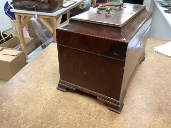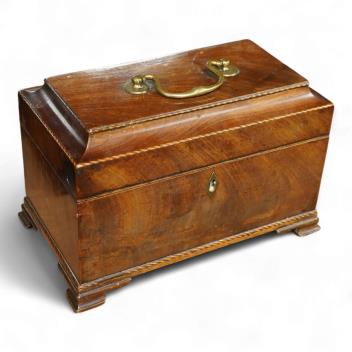 Lot 1608 , A George III mahogany tea caddy, containing tinned metal canisters, 25cm wide