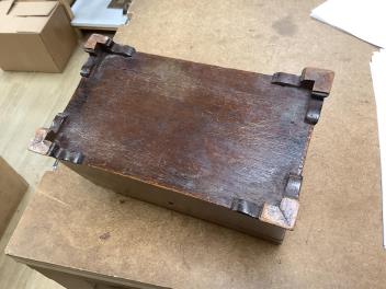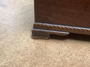 Top with 3cm section of boxwood and ebony beading re-attached, image 13; one rear foot marginally chipped, image 12; canisters with light rust; no key.