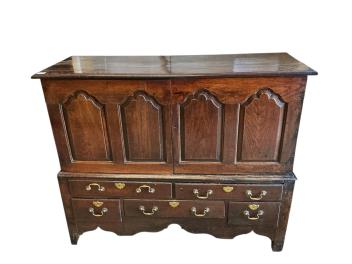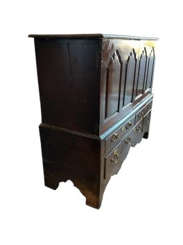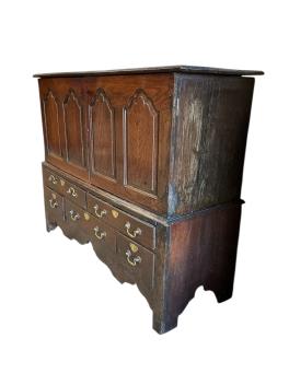 Lot 158 , A George III oak mule chest, adapted, width 144cm, depth 52cm, height 117cm