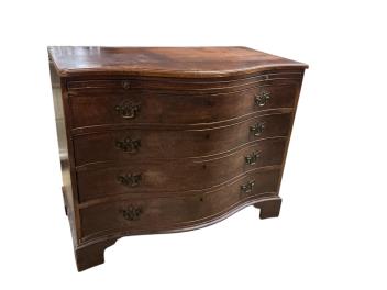 Lot 1031 , A George III serpentine mahogany chest of four drawers with brushing slide, width 107cm, depth 60cm, height 87cm