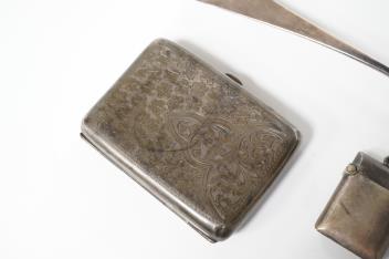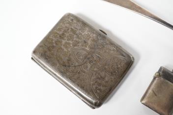 Lot 836 , A George III silver Old English pattern tablespoon, by Peter, Ann & William Bateman, London, 1801, 21.7cm, together with a silver vesta case and cigarette case.