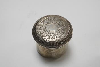 Lot 830 , A George III silver circular counter box and cover, by John Linnet, London, 1816, top diameter 47mm, together with a similar silver toilet box with pierced cover, London, 1814.