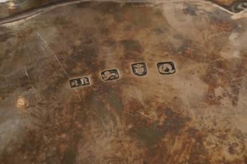 Possible removal to the centre and seems a little thinner??Two of the feet have old silver solder repairs. Surface scratches and nicks in general, commensurate with age and some use. Hallmarks clear.
