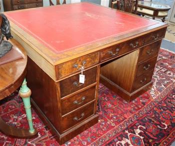 Lot 1958 , A George III style figured walnut partners pedestal desk W.130cm