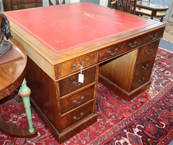 A George III style figured walnut partners pedestal desk W.130cm