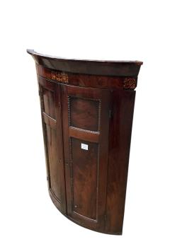 Lot 1092 , A George IV inlaid mahogany bow fronted hanging corner cupboard, width 80cm, depth 54cm, height 108cm