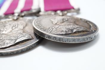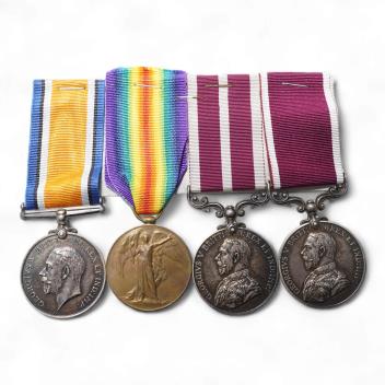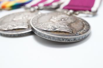 Lot 1328 , A George V military medal group awarded to S-20061 T.S.S. MJR. P.R. Blyth. R.A.S.C., comprising four medals