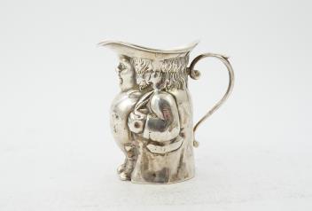 Lot 75 , A George V novelty silver cream jug, modelled as a Toby Jug, by Hayes & Co
