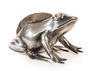 Lot 82 , A George V novelty silver mounted pin cushion, modelled as a frog, by Adie & Lovekin