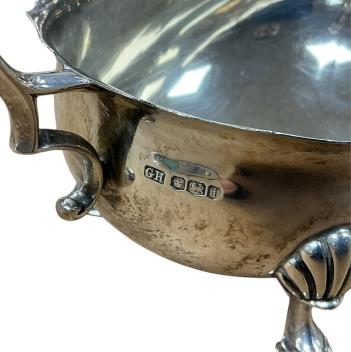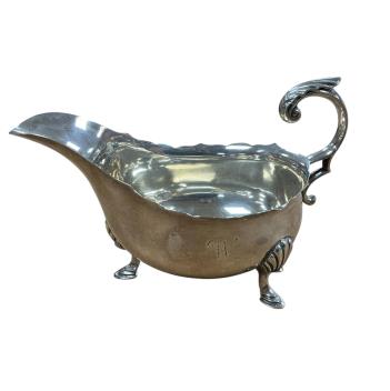 Lot 1863 , A George V silver sauce boat, with flying scroll handle, George Howson, Sheffield, 1926, length 17cm, 6.9oz.
