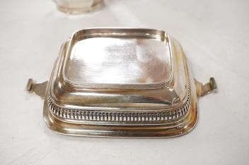 Lot 1840 , A George V silver two handled butter dish, by George Howson, Sheffield, 1928, 16.7cm over handles, together with a George V silver cream jug, by William Suckling Ltd, Birmingham, 1931, 10.7oz.