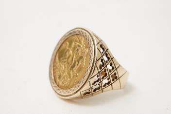 Lot 295 , A George V sovereign coin ring, 1913 and later