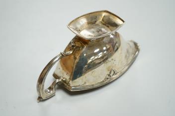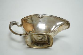 A George VI silver sauceboat by Mappin & Webb, Sheffield, 1938, with engraved initial, length 20cm, 6.9oz.