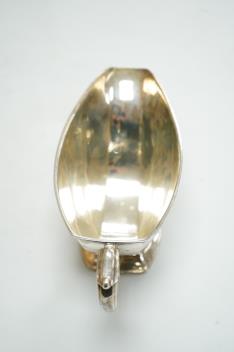 Lot 1828 , A George VI silver sauceboat by Mappin & Webb, Sheffield, 1938, with engraved initial, length 20cm, 6.9oz.