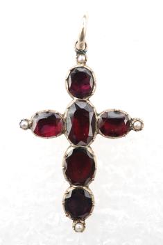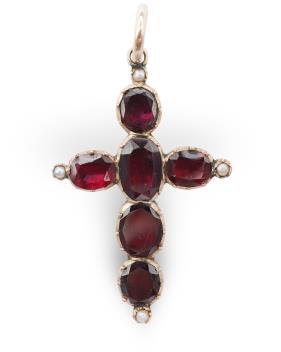 Lot 519 , A Georgian garnet and pearl cross pendant, early 19th century