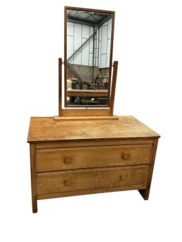 Lot 17 , A Heals style oak chest of three drawers, width 91cm, depth 49cm, height 74cm and a matching two drawer dressing table