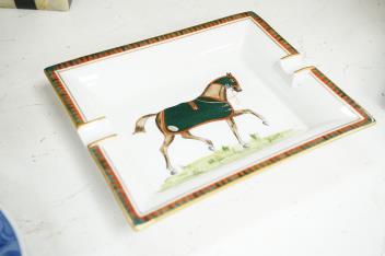 Lot 1343 , A Hermes porcelain ashtray decorated with a racehorse, 19cm wide