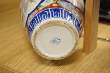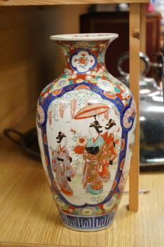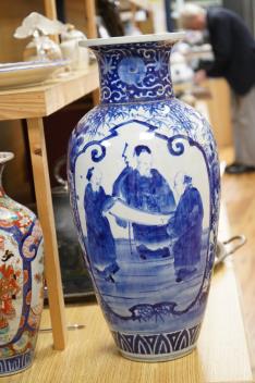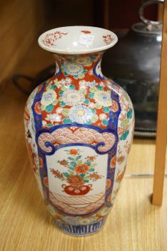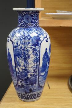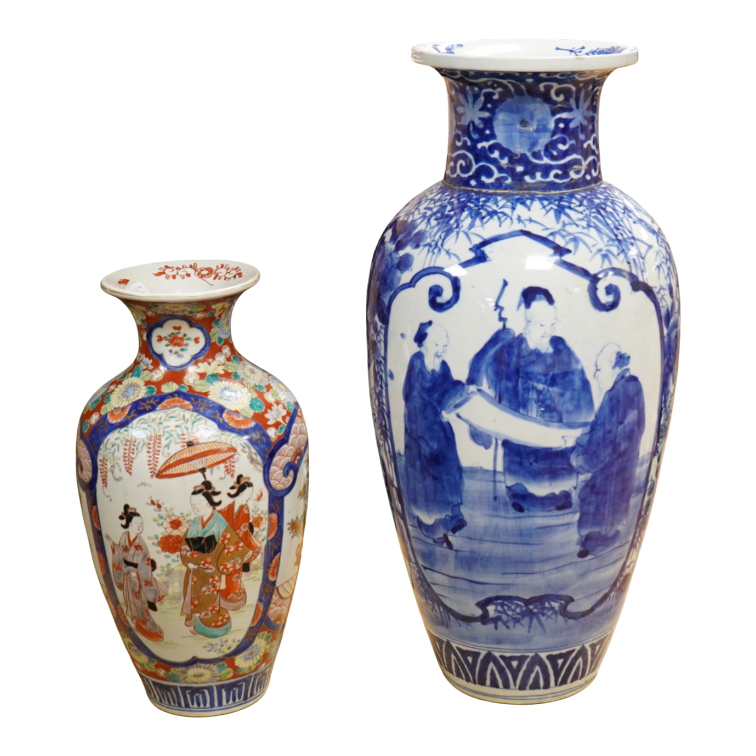 A Japanese Arita enamelled vase, 37cm, and a large Japanese Arita blue and white vase