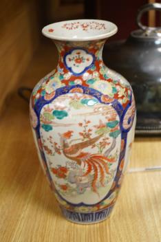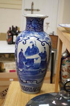Lot 312 , A Japanese Arita enamelled vase, 37cm, and a large Japanese Arita blue and white vase