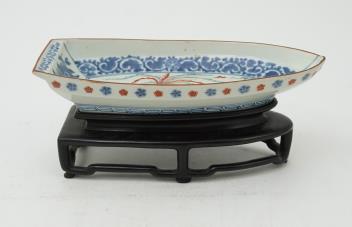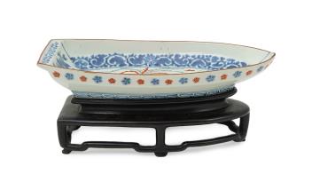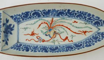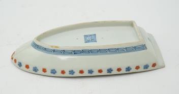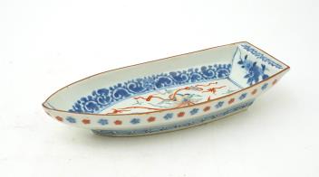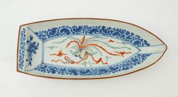 Lot 35 , A Japanese Kakiemon style boat shaped dish, 19th century