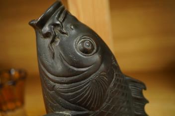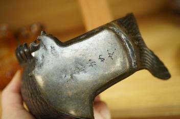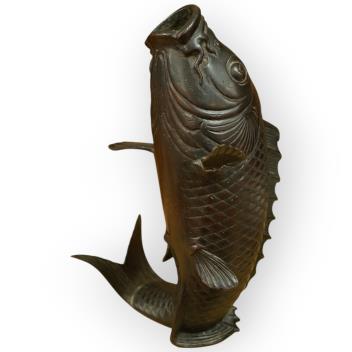 Lot 404 , A Japanese bronze carp shaped vase, 19th century, signed, 23cm high