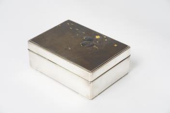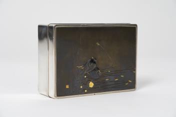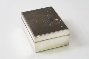 Lot 49 , A Japanese shibuichi and shakudo mounted silver box and cover, Taisho period